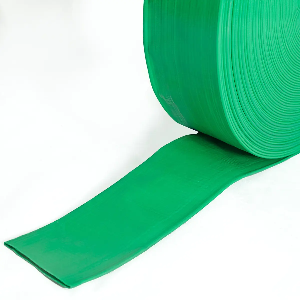 Рукав ПВХ Lay Flat 4″ (100 мм), 50 м GOLDEN DRIP — міцний плоский напірний шланг для перекачки води, поливу, дренажу та підключення до насосів. Виготовлений з якісного армованого ПВХ, стійкого до тиску, механічних пошкоджень та ультрафіолетового випромінювання.